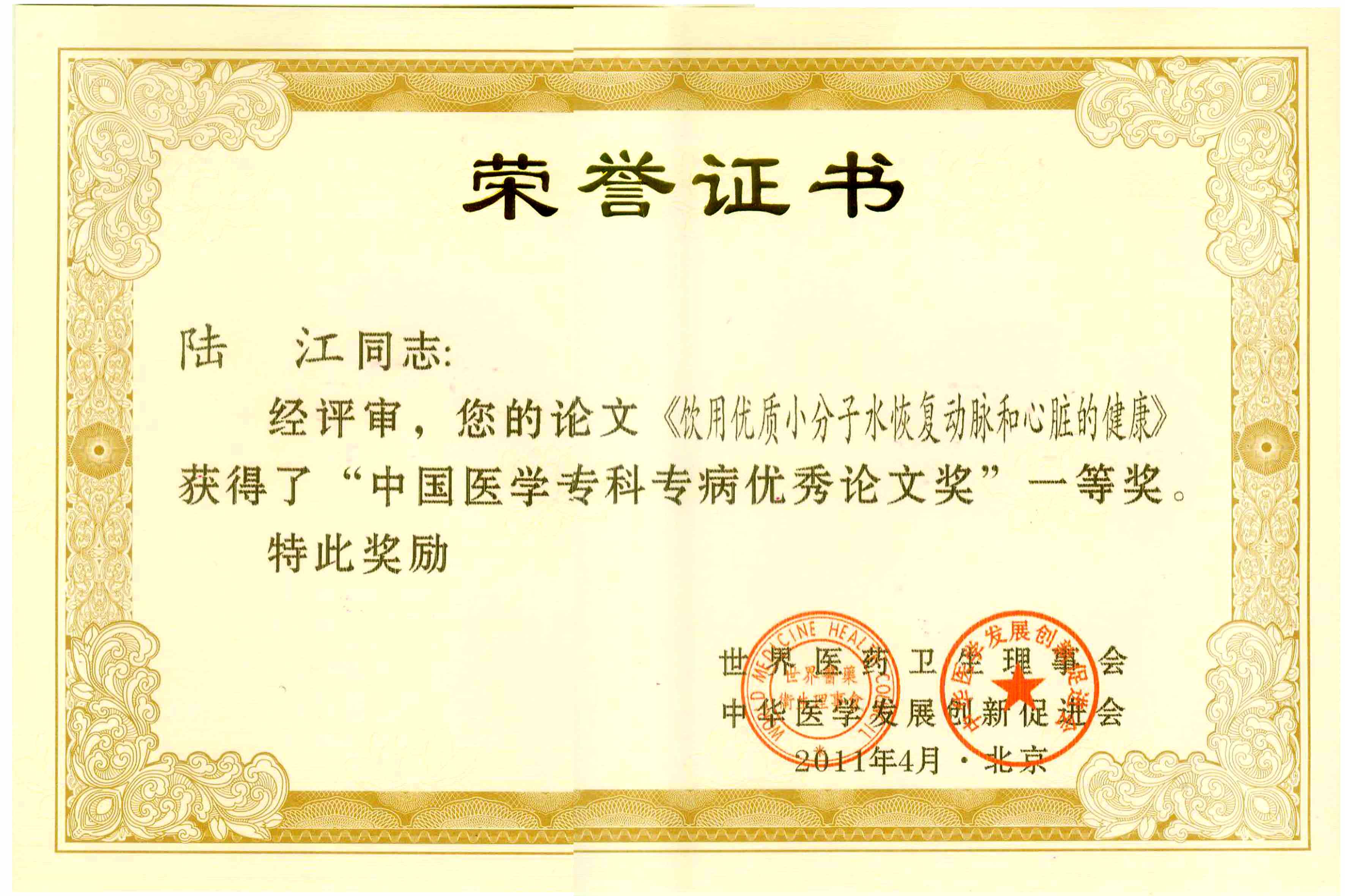 -----我是從事建筑的高工,本來沒有資格去攻克醫(yī)學難題,卻為了自身健康才扣響醫(yī)學的大門。由于我1990年患高血壓,因怕中風才研究發(fā)明了離子水瓶,我把水處理成微小分子團水,飲用后治愈了高血壓。便于1993年底送到三家省級醫(yī)院做臨床試用4個月。經(jīng)北京和廣西醫(yī)學專家鑒定:"降脂降壓效果好"," 能擴大心腦動脈流量,改善心腦電圖以及微循環(huán)","對治療心腦動脈粥樣硬化、高血壓、高血脂有良好的醫(yī)療保健作用。""產(chǎn)品的技術(shù)性能和療效達到了同類產(chǎn)品的國內(nèi)領(lǐng)先水平,經(jīng)廣西醫(yī)學科學情報研究所檢索,未見國外有類似報道。"中國醫(yī)學科學院張正國教授從美國國立醫(yī)學圖書館數(shù)據(jù)庫存Medline檢索英俄文資料,均未見類似報告。2000年上市后,我為了對消費者負責而繼續(xù)觀察研究,一直通過《信譽卡》和《質(zhì)量跟蹤調(diào)查書》向患者承諾療效,請用戶使用6個月后反饋效果。和脂壓患者飲用2至5個月內(nèi),消除癥狀,停服藥物,血壓正常;冠心病患者飲用3~5個月逐漸減輕至消除心絞痛、房顫等癥狀,不再服藥,飲用1年左右心電圖正常,經(jīng)冠脈造影掃描無明顯狹窄,表明冠心病痊愈。大量患者還反映許多衰弱器官被修復,讓前列腺增生、慢性咽喉炎、慢性氣管炎、支氣管炎、慢性胃炎、腸炎和膽囊炎等不藥而愈;2型糖尿病患者是因為胰島衰弱致病,飲用該水半年至一年,逐漸減藥至停藥,血糖尿糖正常,真正治愈2型糖尿病。中風后遺癥患者飲用六七個月,可逐漸減輕至消除肢體和語言障礙,表明飲用該水能讓壽命很長的神經(jīng)元細胞逐漸修復,奇跡般地恢復肢體和語言功能。飲用后還使胸腺和脾臟兩個重要的免疫器官被修復和增強,產(chǎn)生免疫細胞多,提高了免疫力,使人不生病或少生病。自此, 飲用微小分子團水創(chuàng)造了攻克冠心病、高(低)血壓和糖尿病三大醫(yī)學難題的奇跡。人們對此感到不可思議,但實踐是檢驗真理的唯一標準。