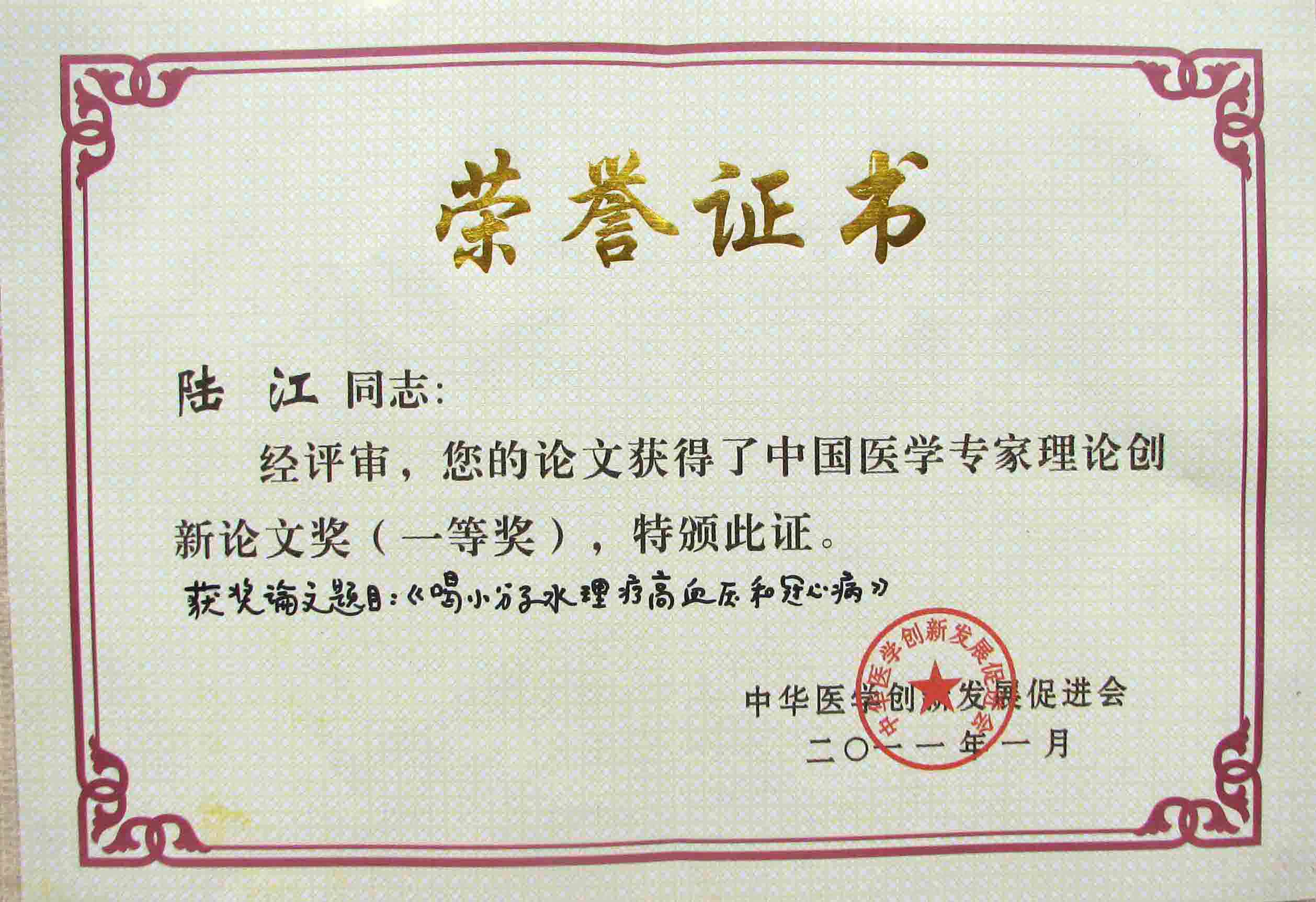 人類幾千年來患以上病癥需終生服藥,幾十年也不能治愈??墒俏覈蠈幍母呒壒こ處熽?nbsp;江,于1990年想根治高血壓,研究發(fā)明了離子水瓶,處理出微小分子團水供飲用,經(jīng)過醫(yī)院臨床試用和專家鑒定,1999年獲中國發(fā)明專利權(quán),產(chǎn)品于2000年投放市場后一直跟蹤調(diào)查,據(jù)全國各地用戶反饋:祛除了高低血壓、糖尿病和冠心病,并使前列腺增生、咽喉炎、鼻竇炎、慢性氣管炎、支氣管炎、矽肺病、哮喘、慢性胃炎、腸炎、慢性膽囊炎、慢性腎炎、腎衰、膀胱炎、便秘、痔瘡、風濕性關(guān)節(jié)炎和濕疹皮炎及中風后遺癥等病癥不藥而愈。為什么喝微小水能治20多種病?陸 江從1991年德國科學家發(fā)現(xiàn)細胞膜水通道僅為2納米獲得啟發(fā),認為多種器官患病是因細胞脫水,不能正常代謝和分裂增殖,才使器官細胞減少致衰弱萎縮而形成細胞缺水性病癥。22年來的實踐有力地支持了“細胞脫水致病”這一重要論點,表明喝微小水可滿足細胞的生理需求,補水就能祛病,是生命科學新亮點。