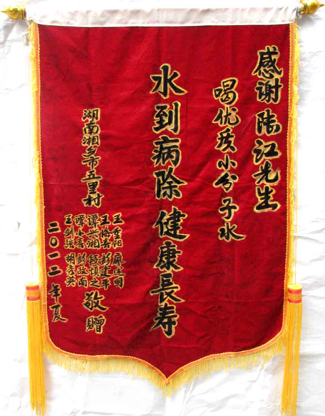 新疆63歲的賀兆生飲用一年,冠心病未愈,他用電話介紹是食堂管理員,問他食量多少?說吃七八分飽,睡前還吃兩袋牛奶,陸 江說我在論文和書中多次批判“吃七八分飽”,關(guān)照患者務必用“己饑方食”控制主食肉食量,要他把牛奶改在早中餐吃,減少主食肉食量,建議不吃晩餐,晚上只吃一個蘋果,再經(jīng)幾個月補水節(jié)食,治愈了21年的冠心病和肥胖、失眠等病,信中由衷地感激陸 江為再生父母。[13]因為醫(yī)生從未過問他的膳食習慣,只管開處方藥或手術(shù),父母也不會叫他不吃晩飯。